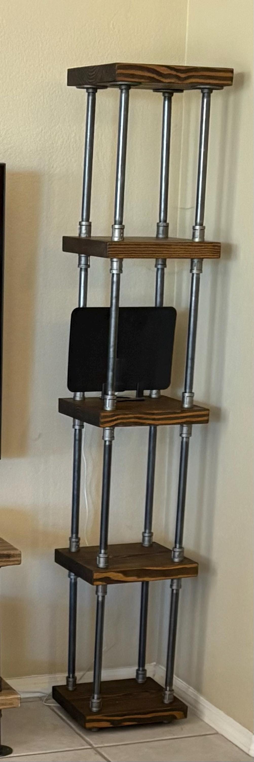 This beautiful freestanding bookshelf will bring just the right balance of raw, industrial materials to your home or office design. 5 levels create plenty of display space for the decor of your choosing! THIS WILL NEED TO BE PARTIALLY ASSEMBLED UPON RECEIVING!! We will ship with the bottom 2 levels assembled and the rest of the pieces will need to be added due to shipping sizes. See photos and ask any questions before purchasing!